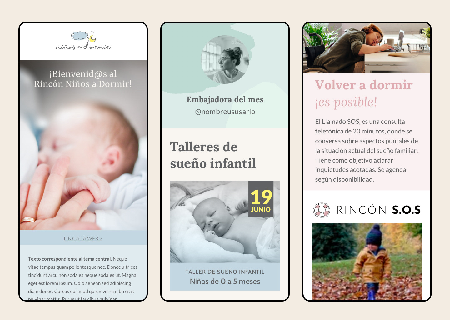 Newsletter template design for sleep coach service.